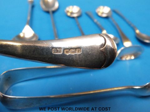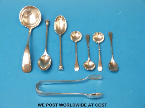 Quantity of various hallmarked silver cutlery including tongs, ladle etc (108g)