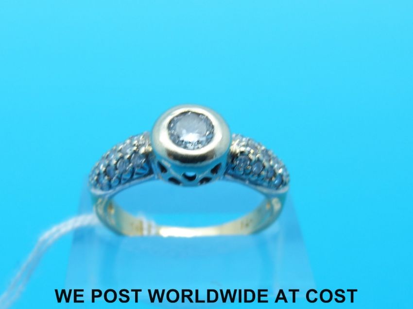 An 18ct gold ring set with a round brilliant cut diamond measuring 0.3ct and further diamonds to the shoulders (total carat weight approximately 0.7ct, size N)