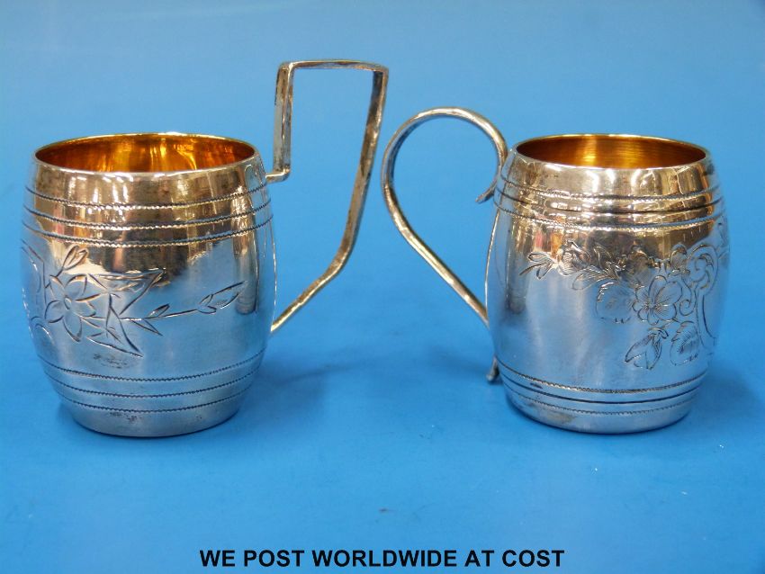 Two Russian white metal drinking cups, both with gilt wash interiors