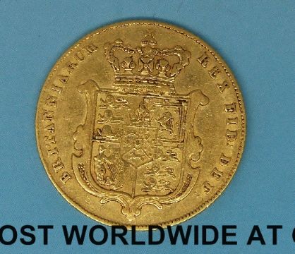 An 1826 George IV gold full sovereign, bare head, shield reverse, better than F