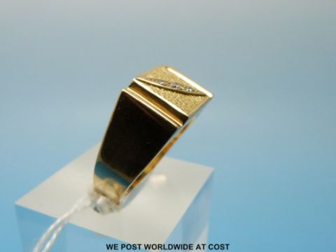 An 18ct gold gentleman's ring set with three cubic zirconia (size Z, 6.4g)