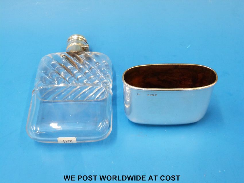 A Sampson Mordan Victorian hallmarked silver and wrythen glass hip flask, Ldn 1888, with bayonet top and pull-off cup with gilt wash interior (height 14cm)