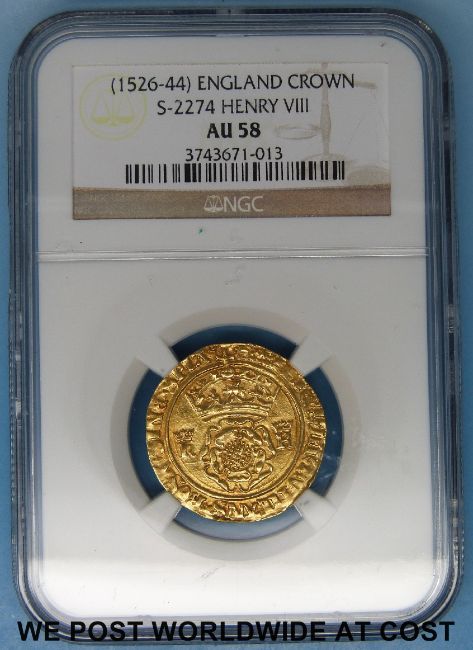 A 1526 - 1544 Henry VIII English gold crown 'H R'