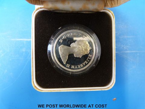 A silver Pobjoy Mint Isle of Man £1 coin in case with certificate, together with a silver Queen Mother 80th birthday crown, cased and a UK 1982 piedfort silver 20 pence coin, together with seven UK bank notes, five being consecutive crisp £1 examples