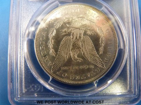 A proof PCGS MS63 1880 Morgan dollar slabbed