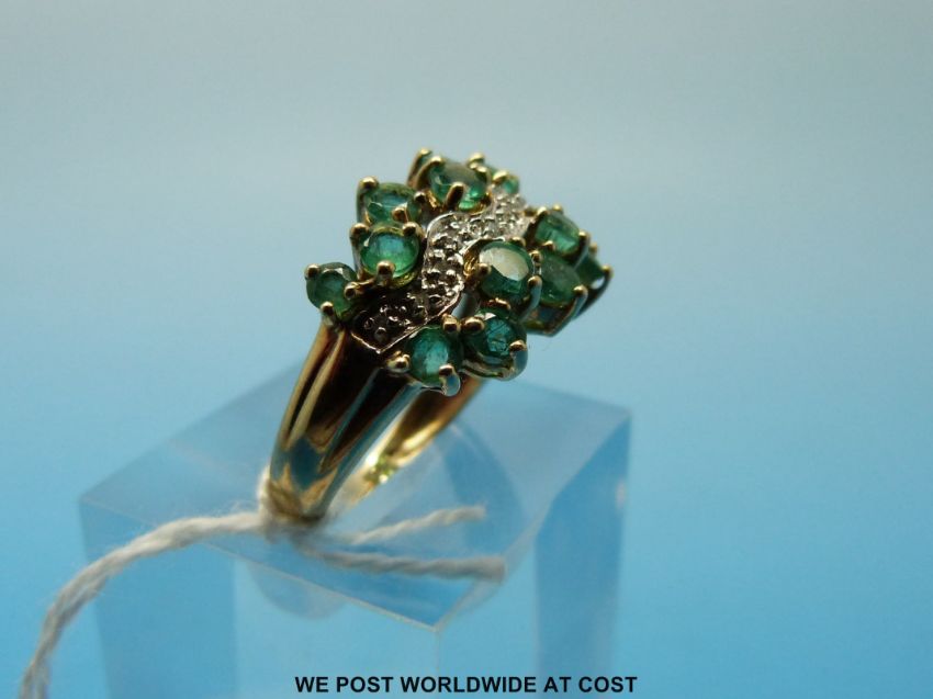 A 9ct gold ring set with emeralds and diamonds (size O)