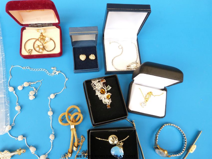 A collection of costume jewellery to include watches, necklaces set with semi precious stones etc