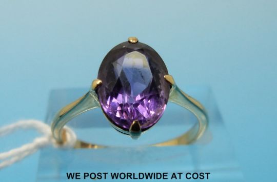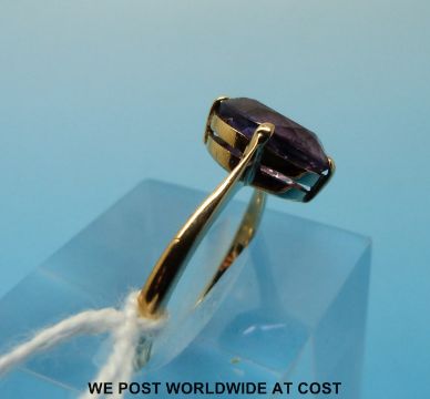 A 9ct gold ring set with an oval amethyst measuring approx 2.35ct (size N)