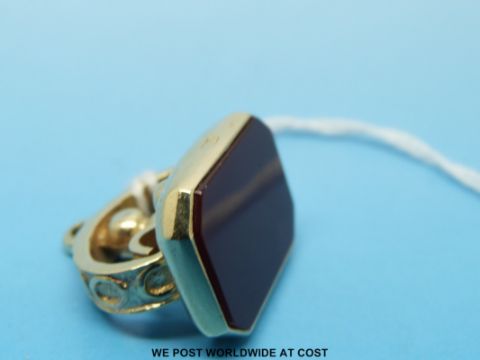 A 9ct gold hardstone fob (11.8g)