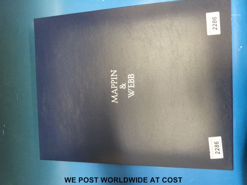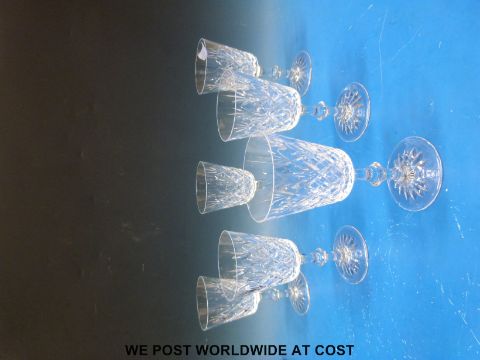 A set of six Mappin & Webb wine glasses with cut decoration in original box