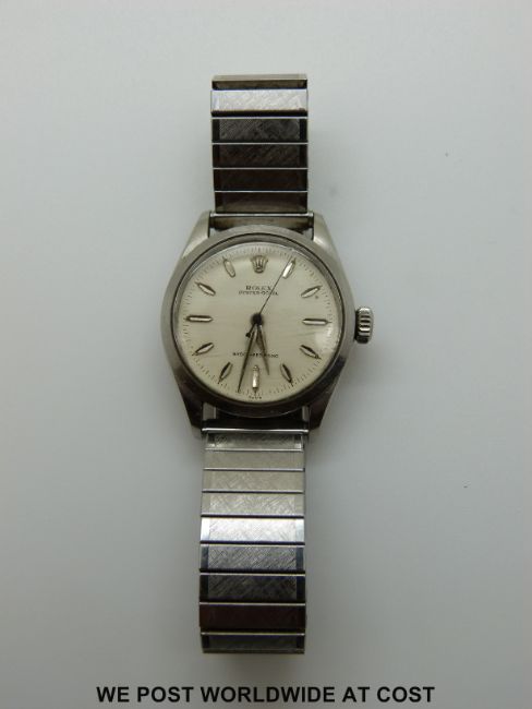 Rolex Oyster-Royal gentleman's wristwatch with stainless steel case, baton markers and hands and white face.