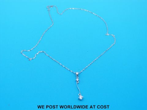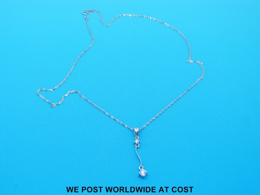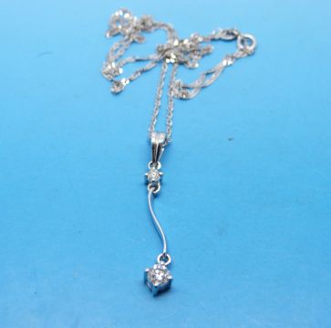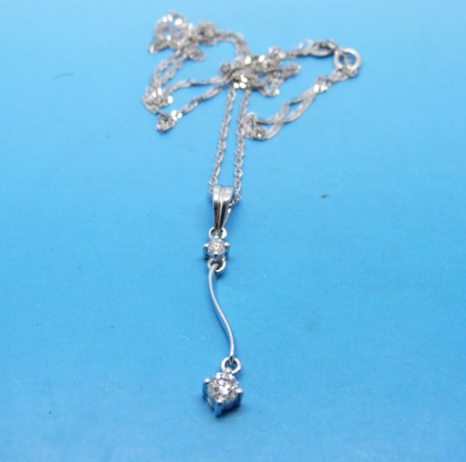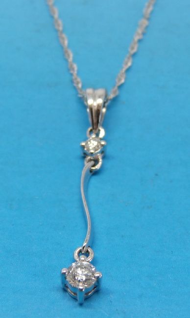 A platinum pendant set with two round brilliant cut diamonds on an 18ct white gold chain