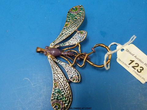 A large enamelled dragonfly brooch