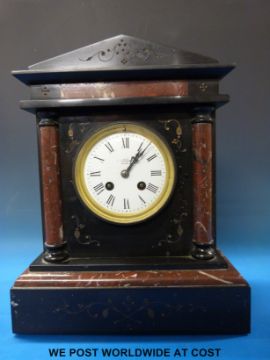 A two-train mantel clock striking on a gong with Roman numerals and "Mappin & Webb London" stamped to face.