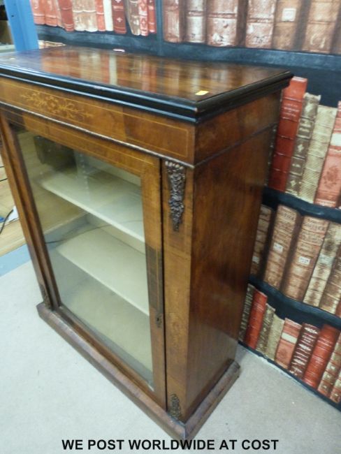 A 19thC inlaid walnut glazed pier cabinet with ormolu mounts (H98, W75, D31cm)