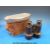 A collection of bakelite plugs, switches and binoculars, a wooden dog's head and a small tin, WW2 bathtub 10A/7790. morse key