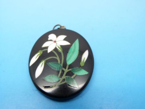 A pietra dura pendant depicting flowers