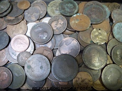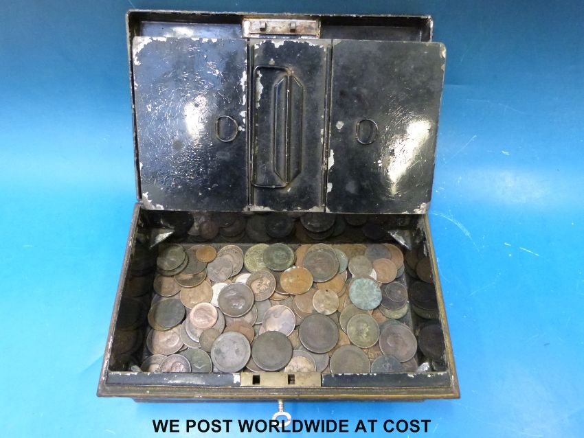A collection of Georgian coinage etc., in vintage coin box