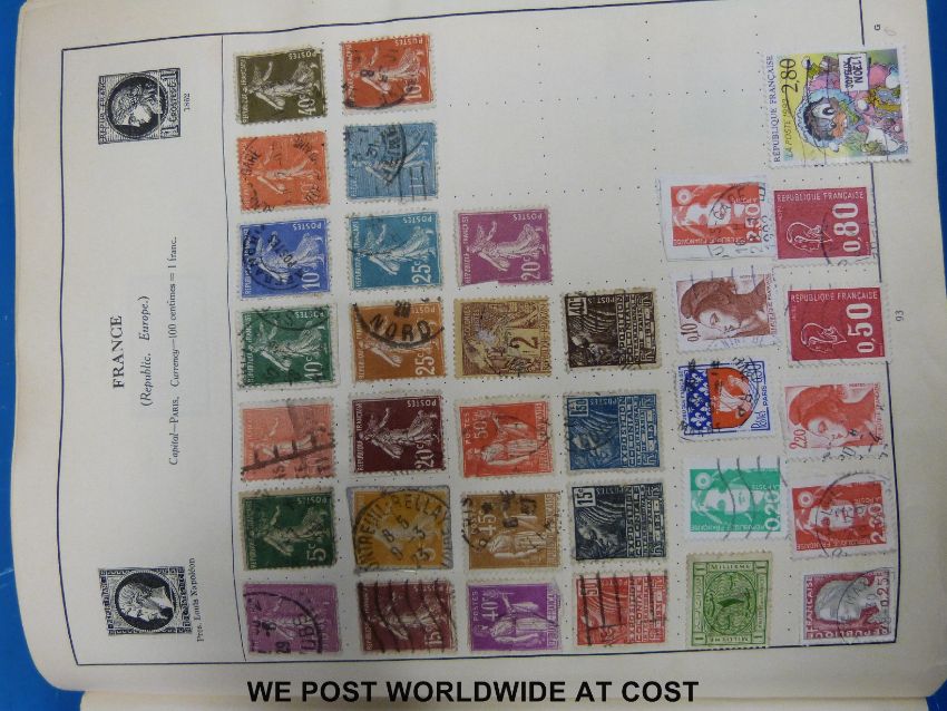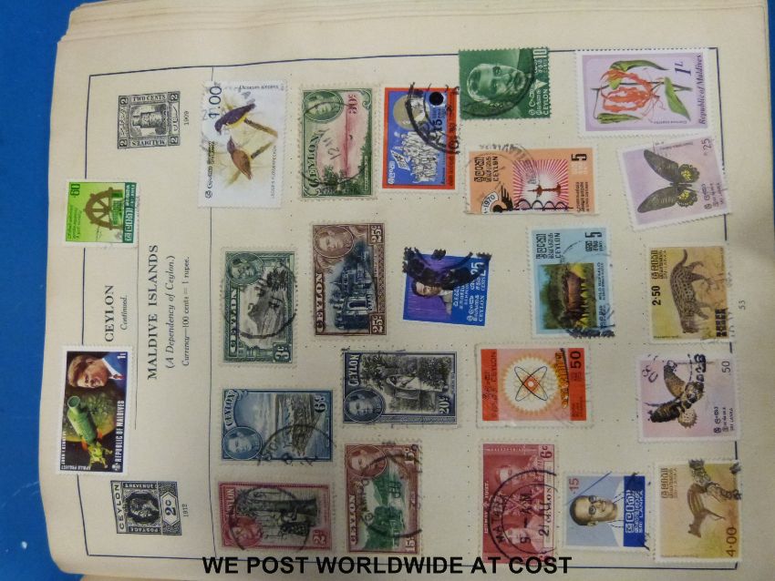 A collection of all-world stamps in albums, stockbooks and loose together with some Kensitas silks, mainly flags