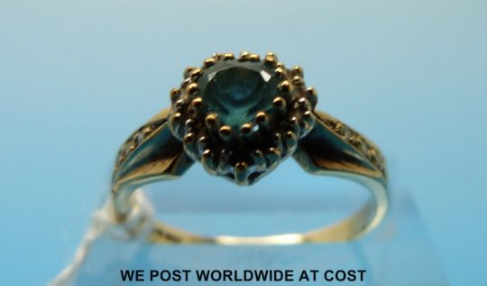 A 9ct gold ring set with a heart shaped aquamarine surrounded by diamonds (size O)