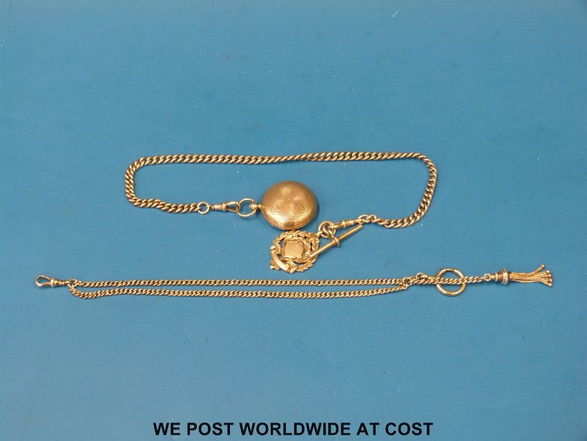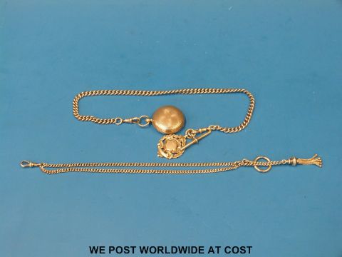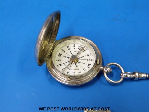 A Victorian Stanley full hunter style pocket compass, marked to the enamel dial "Stanley Gt Turnstile London" (Ldn 1869) on a hallmarked silver kerb link chain with fob, together with a ladies hallmarked silver watch chain