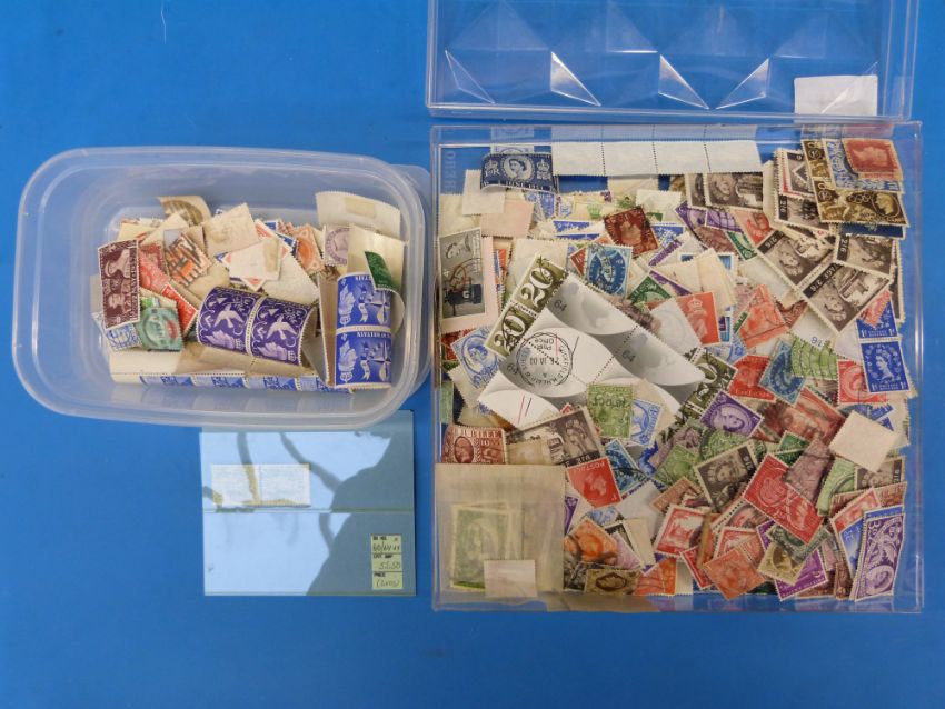 Two boxes of loose GB stamps, all reigns, includes interesting mint pair SG128 1/2d pale green