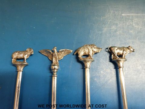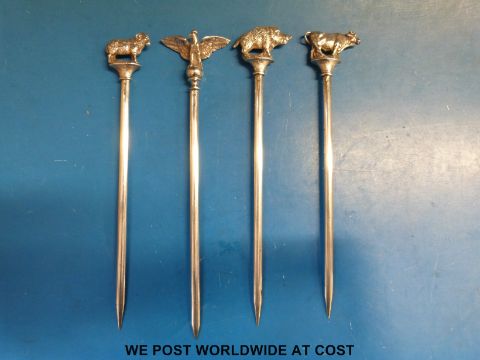 Four various silver plated skewers, each marked Geislingen (pre WMF)