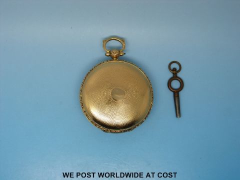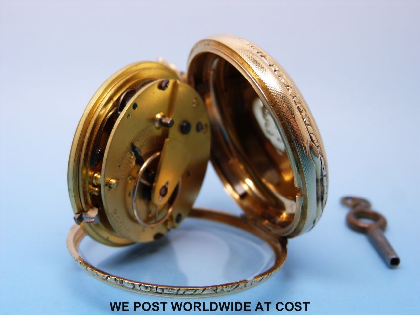 A c1880 gentleman's 18ct gold fusee pocket watch with beetle and poker hands and chased dial