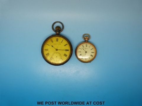 Gabriel of London silver cased keyless gentleman's pocket watch, hallmarked Birmingham 1885, together with a Waltham ladies gold plated keyless fob watch