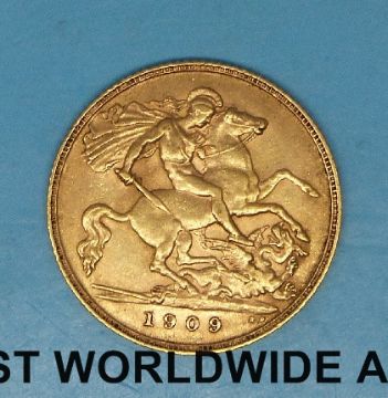 A 1909 gold half sovereign