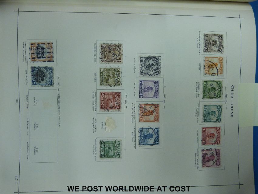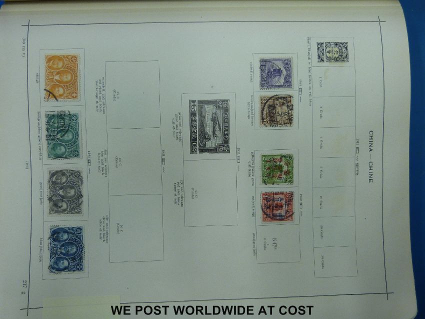 A Schaubeck album sparsely filled but with some good early China, Japan & Indian States stamps