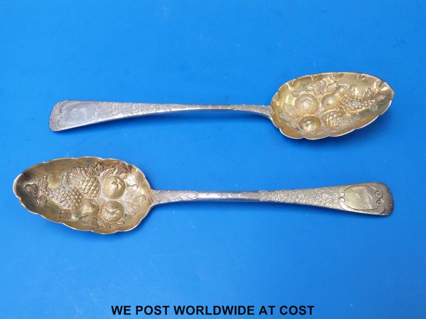 A pair of Georgian hallmarked silver berry spoons, Ldn 1807 (217g, 22cm long)