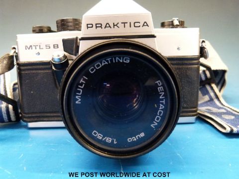A Pentax P30 SLR camera with 70 - 210mm 1:4 - 5.6 Tokina lens, a Pentax Asahi camera, Praktica MTL5B camera, lenses including Marumi 72mm zoom, Mirage lenses, accessories all contained within two bags