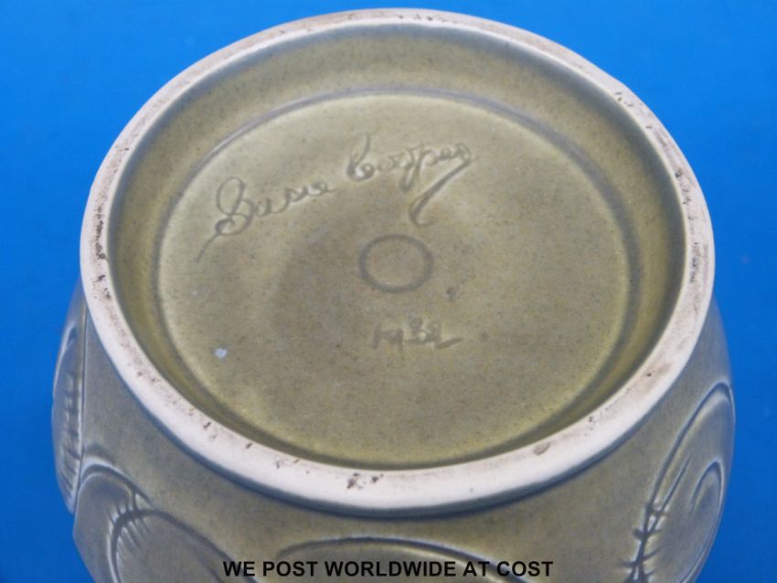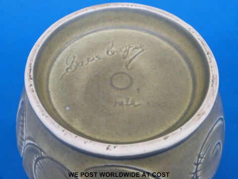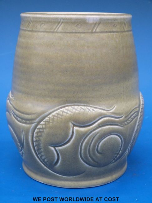 A Susie Cooper vase with sgraffito decoration on a green ground