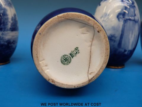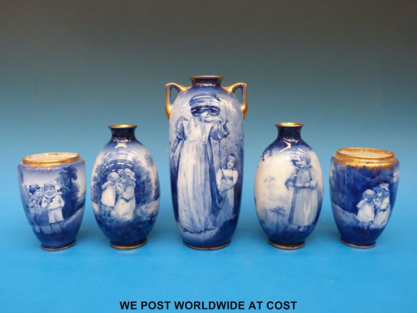 Five Royal Doulton Blue Children and flow blue vases (tallest 21cm)
