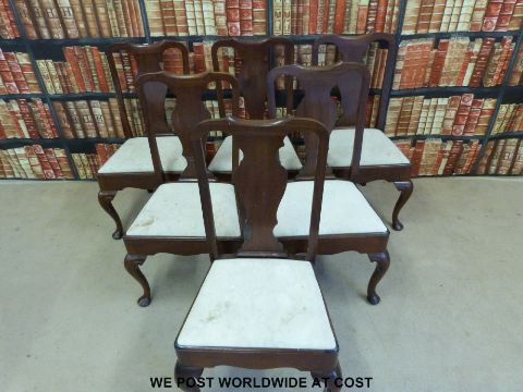 Six 19thC mahogany dining chairs in the Chippendale style, the front cabriole legs raised on ball and claw feet