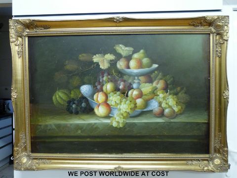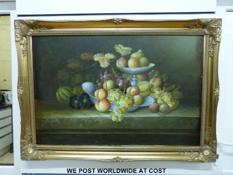 Large framed oil on canvas fruit in bowls in gilt frame (60 x 90cm)