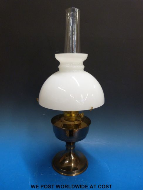 Brass oil lamp with glass shade