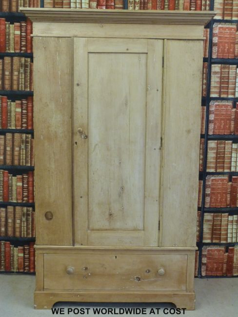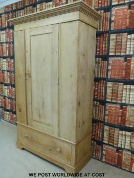 A pine single drawer wardrobe with drawer below (W131 x D56 x H213cm)