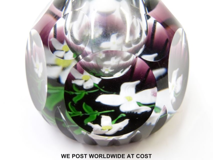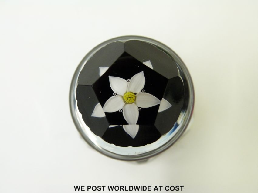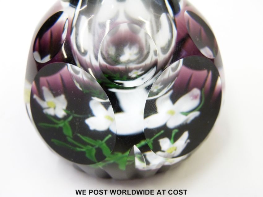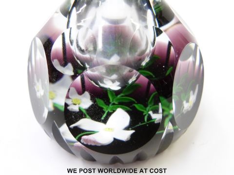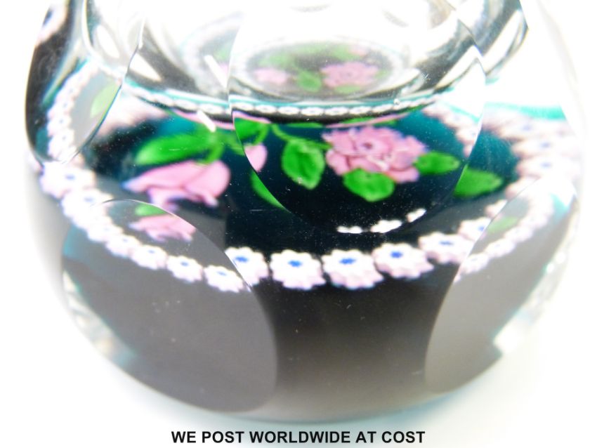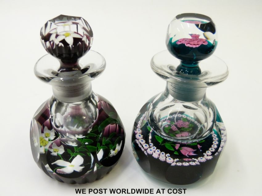 Two limited edition Caithness glass paperweight ink/scent bottles 'Royal Golden Wedding Anniversary' 28/50 and 'The Queen Elizabeth Rose' 35/70 both 13cm tall and in original boxes.