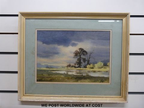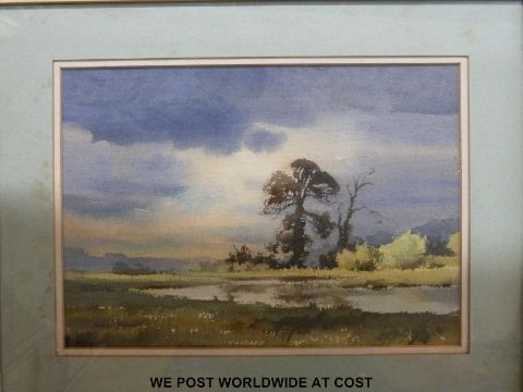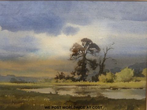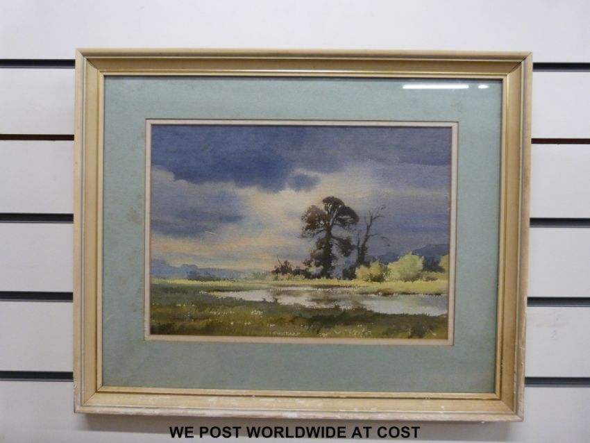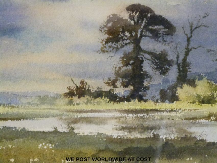 Denis Pannett watercolour 'Evening Rain, Chess Valley', signed lower left, label verso (25 x 36cm)