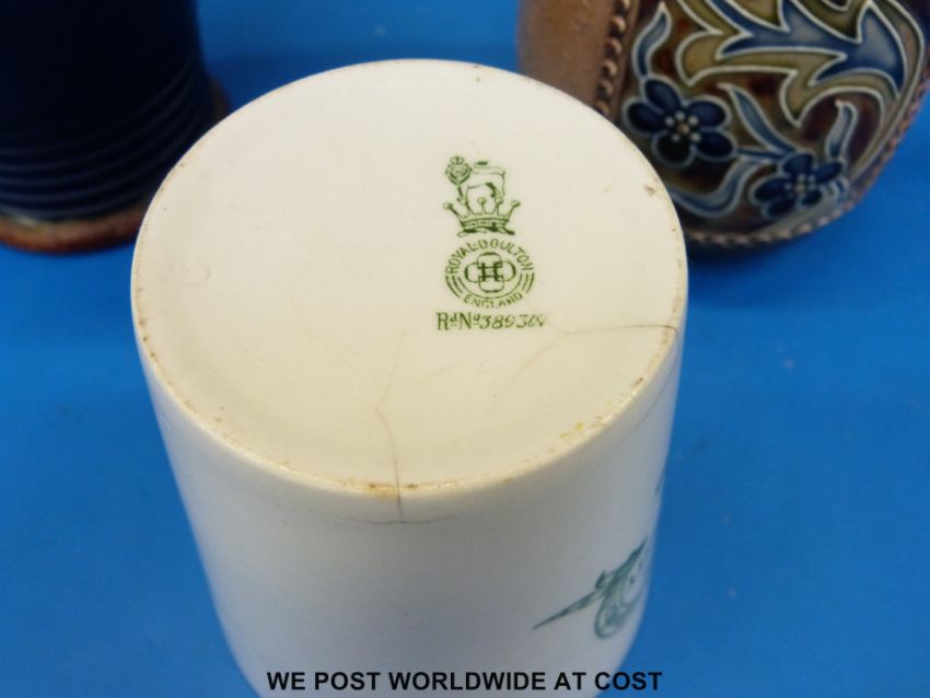 A Royal Doulton lemonade jug, guglet and 1902 beaker (tallest 21cm)