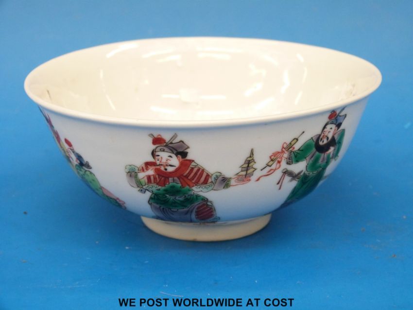 A 19thC / early 20thC Chinese famille verte bowl decorated with figures (13.5cm diameter)