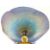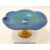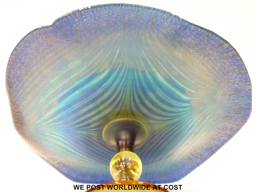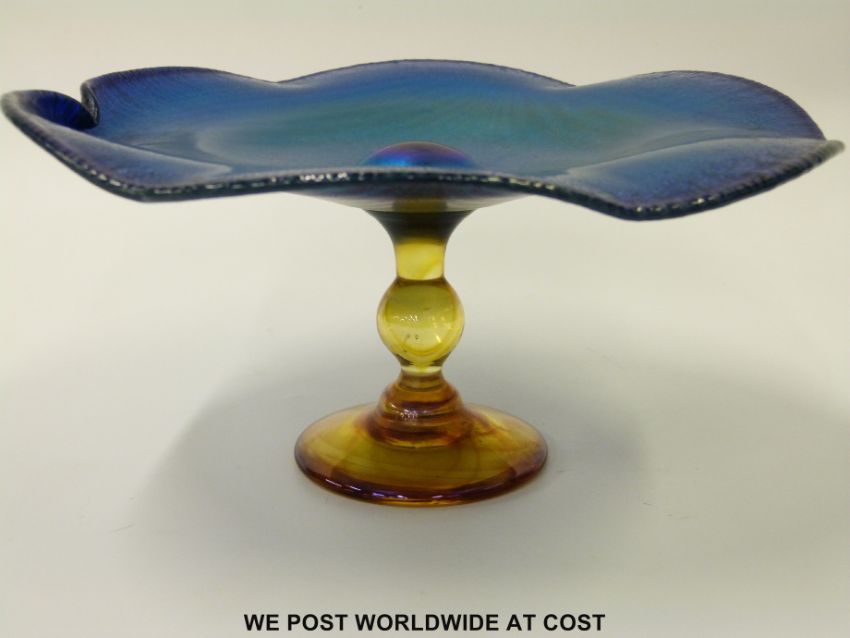 Okra glass tazza with iridescent blue waving top on yellow base (D23cm H11cm)