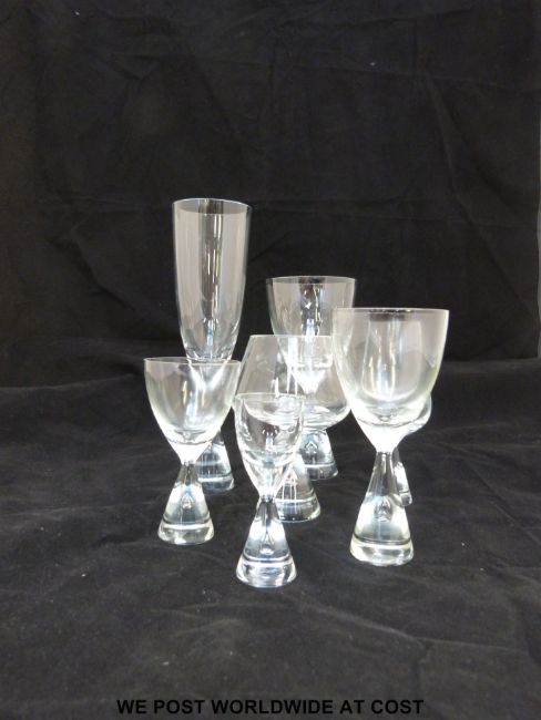 Suite of Holmegaard Canada glasses (77 in total) comprising eight champagne flutes, eight red wine glasses, eight white wine glasses, six champagne glasses, six water glasses, eight small brandy glasses, eight large brandy glasses, nine sherry glasses, eight port glasses, six cordial glasses and two cordial glasses.