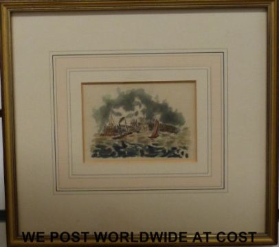 Attributed to Clarkson Stanfield RA 1793-1867: Pair of watercolours of maritime and coastal scenes (7.5 x 10cm)
