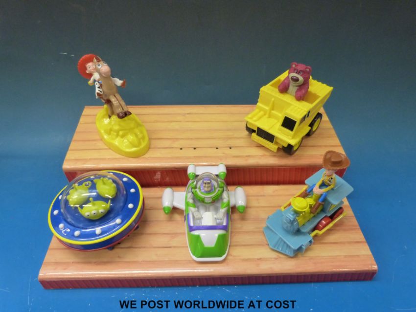 A Shell display stand of '5 toys to collect' including figures and advertising poster