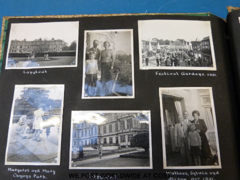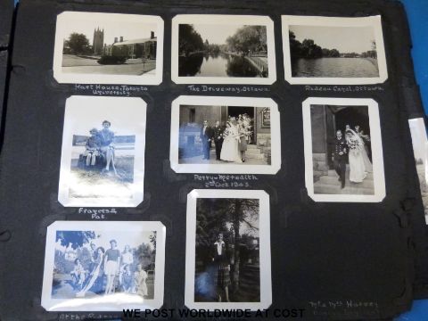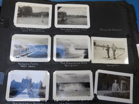 Three photograph albums with family and informative photographs dating from 1918-1953. To include pictures from Hong Kong / China, a race course fire at Happy Valley Hong Kong 1918, Hayling Island 1922, Margate 1924, South Africa, Holland 1929, an old photo in front of a Kodak shop, the oil fields in Arkansas 1942, Niagara Falls, Ottawa 1942, New York, Toronto 1944, Amsterdam, Slimbridge etc.