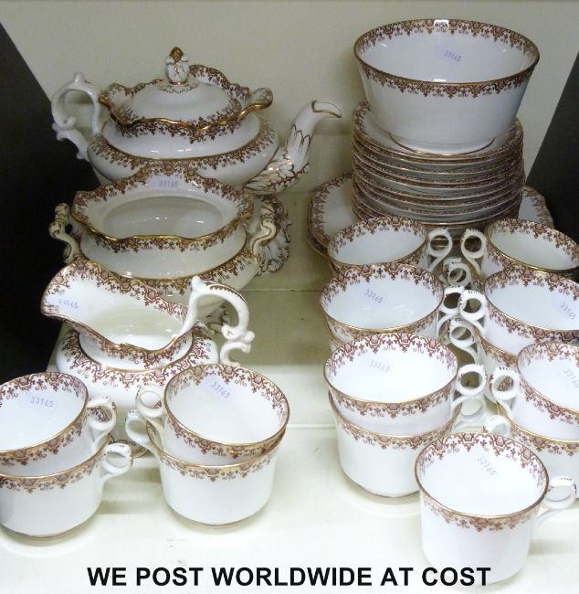 A late Victorian Copeland & Garrett tea set, teapot with stand, milk, sugar basin, sandwich plates, 17 cups and 12 saucers