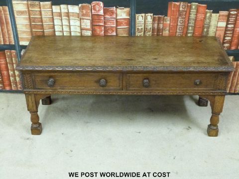 A low oak two drawer table (L106cm)